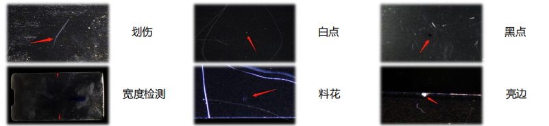 該產(chǎn)品應(yīng)用于手機導(dǎo)光板劃傷、白點、黑點、亮邊、料花、寬度檢測,其檢測速度可依據(jù)前端設(shè)備速度定制。